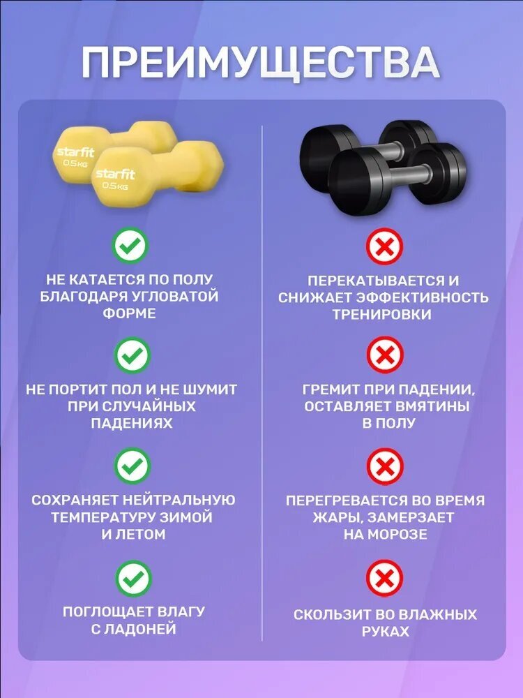 Neoprene STARFIT DB-201 0.5 kg, yellow pastel, 2 pcs
