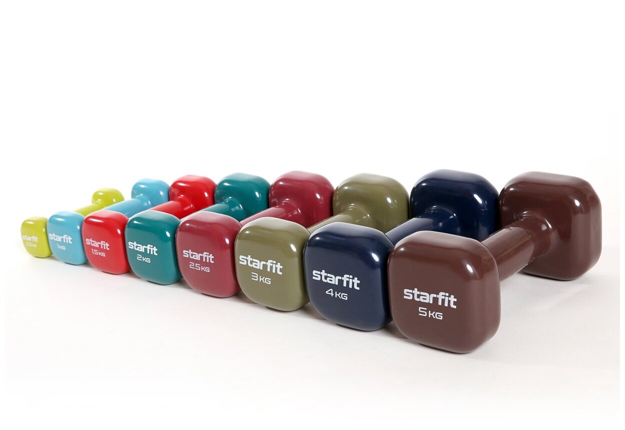 Type: dumbbell set, design: non-separable, dumbbell shape: square, disc coating: vinyl, handle coating: vinyl