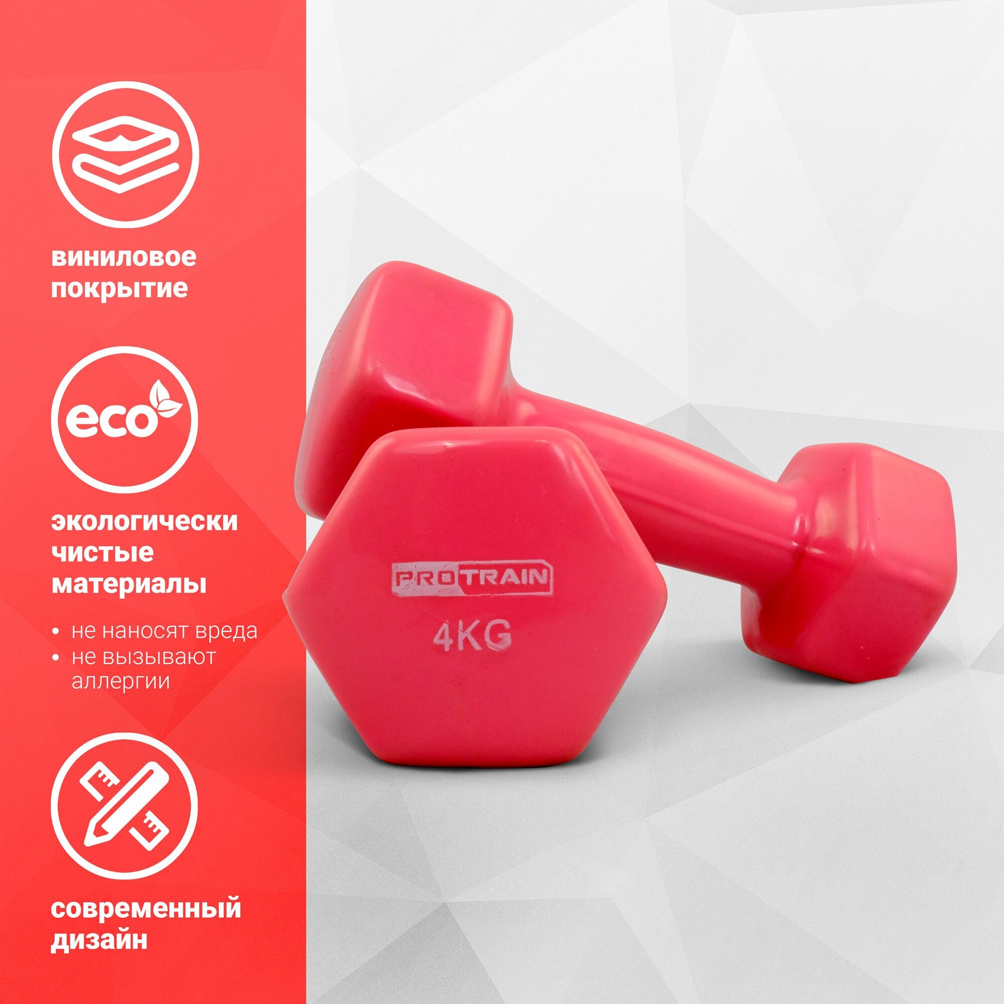 Type: dumbbell, design: fixed, dumbbell shape: hexagonal, disc coating: plastic, handle coating: plastic