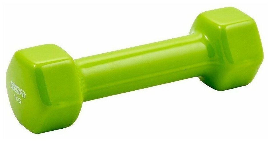 Dumbbell PROFI-FIT in vinyl cover 3 kg, hexagon shape, grey, PF-VDB-3, 1 pc. 1 kg, green color