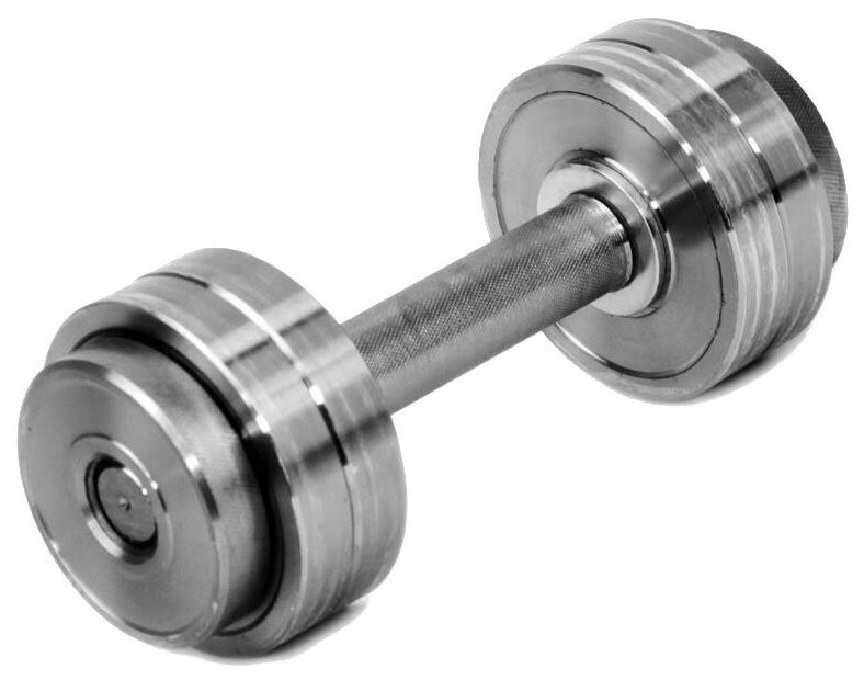 Type: dumbbell, design: collapsible, neck lock: nut, disc coating: chrome, handle coating: chrome