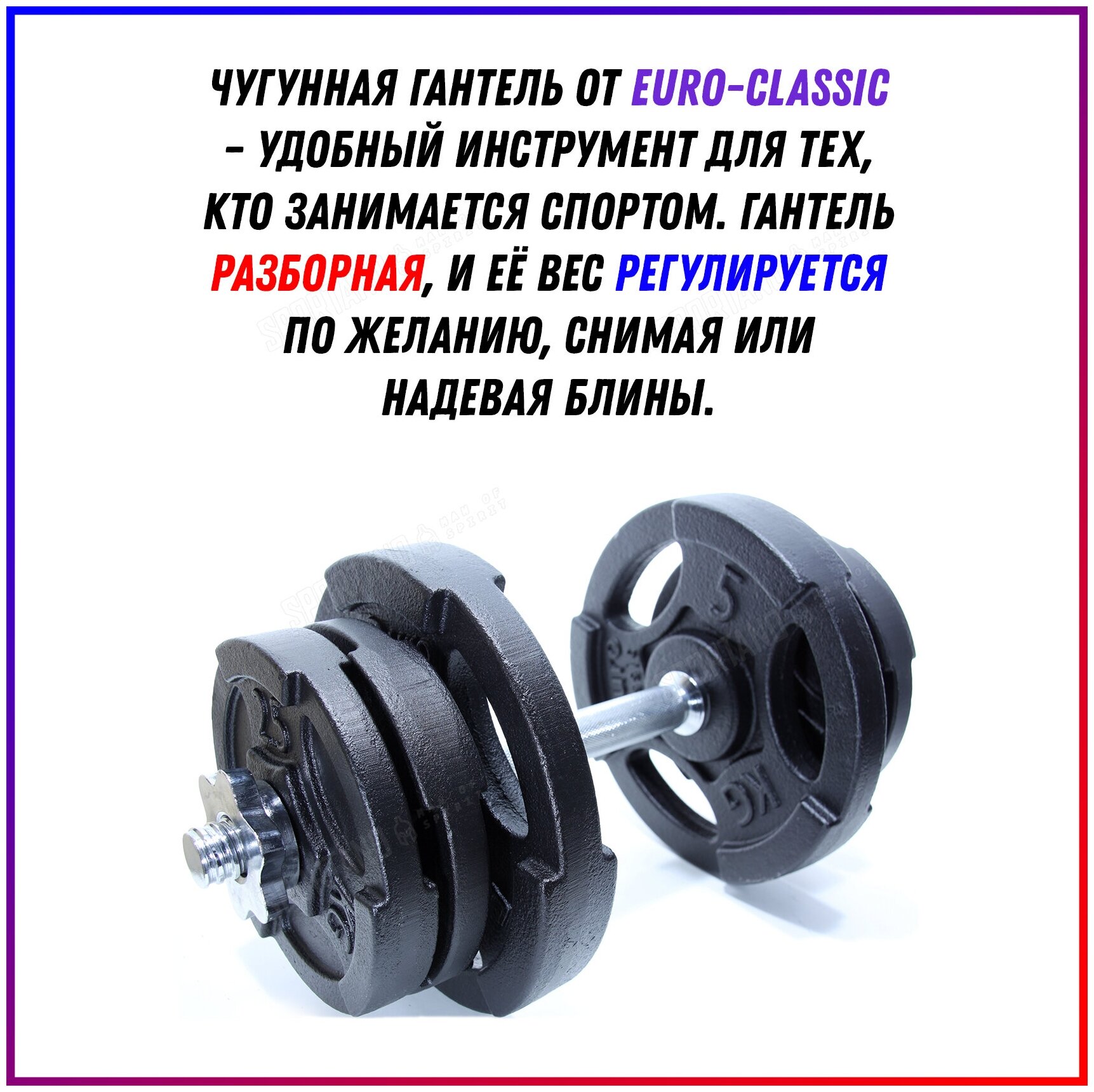Cast iron dumbbell 22 kg collapsible Euro-Classic 2x5 kg, 4x2.5 kg