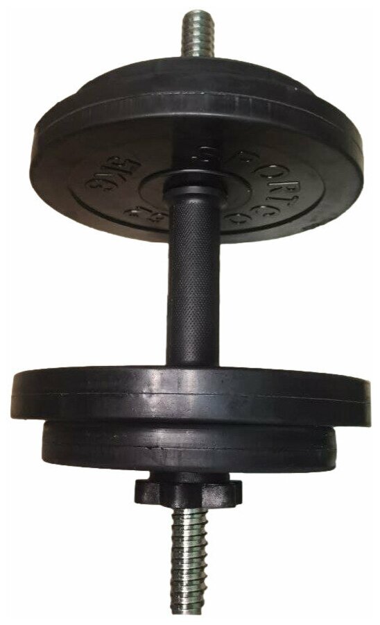 Type: dumbbell, design: collapsible, neck lock: nut, handle coating: rubber