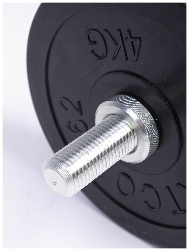 Type: dumbbell, design: collapsible, dumbbell shape: round, neck lock: nut, disc coating: rubber, handle coating: chrome