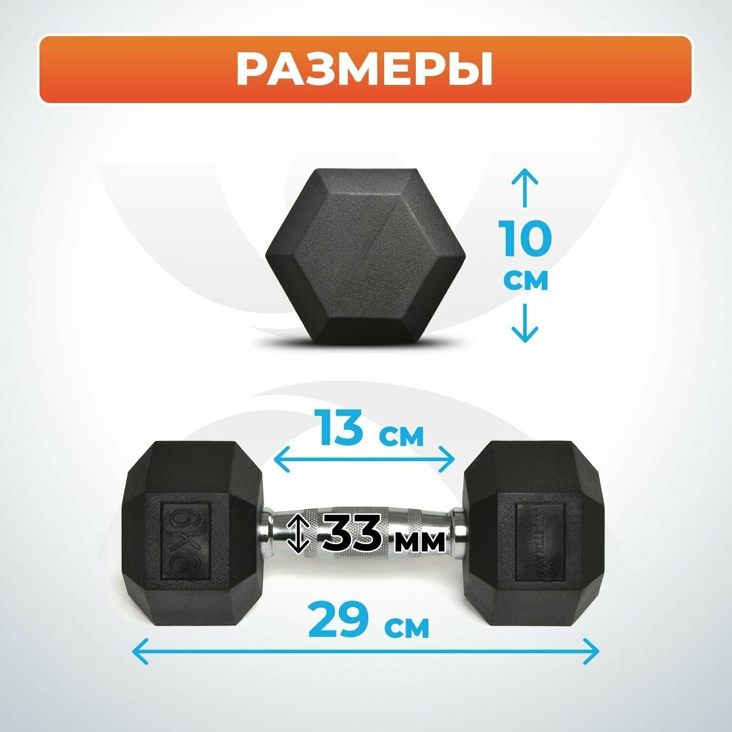 Type: dumbbell, design: non-separable, dumbbell shape: hexagonal, features: hexagonal, disc coating: rubber, handle coating: chrome