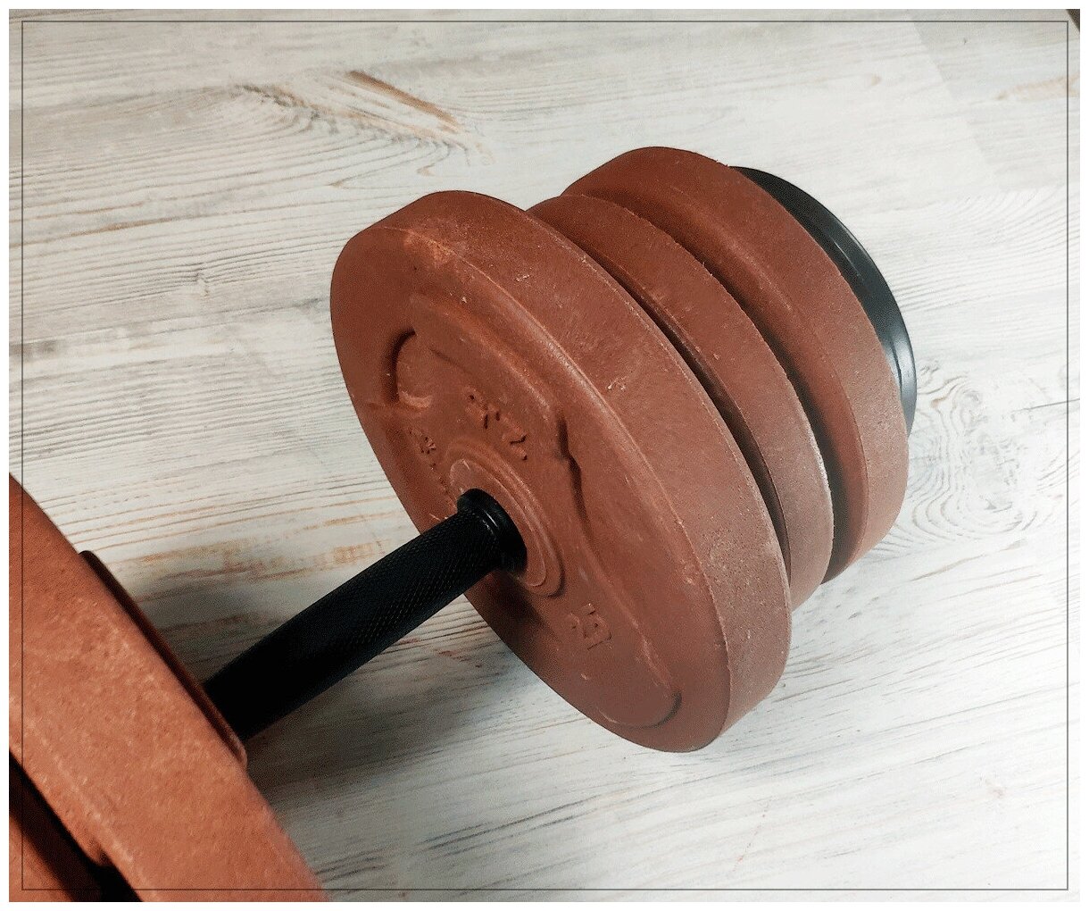 Type: dumbbell, design: collapsible, dumbbell shape: round, features: adjustable dumbbell, neck lock: nut, disc coating: Composite, handle coating: plastic