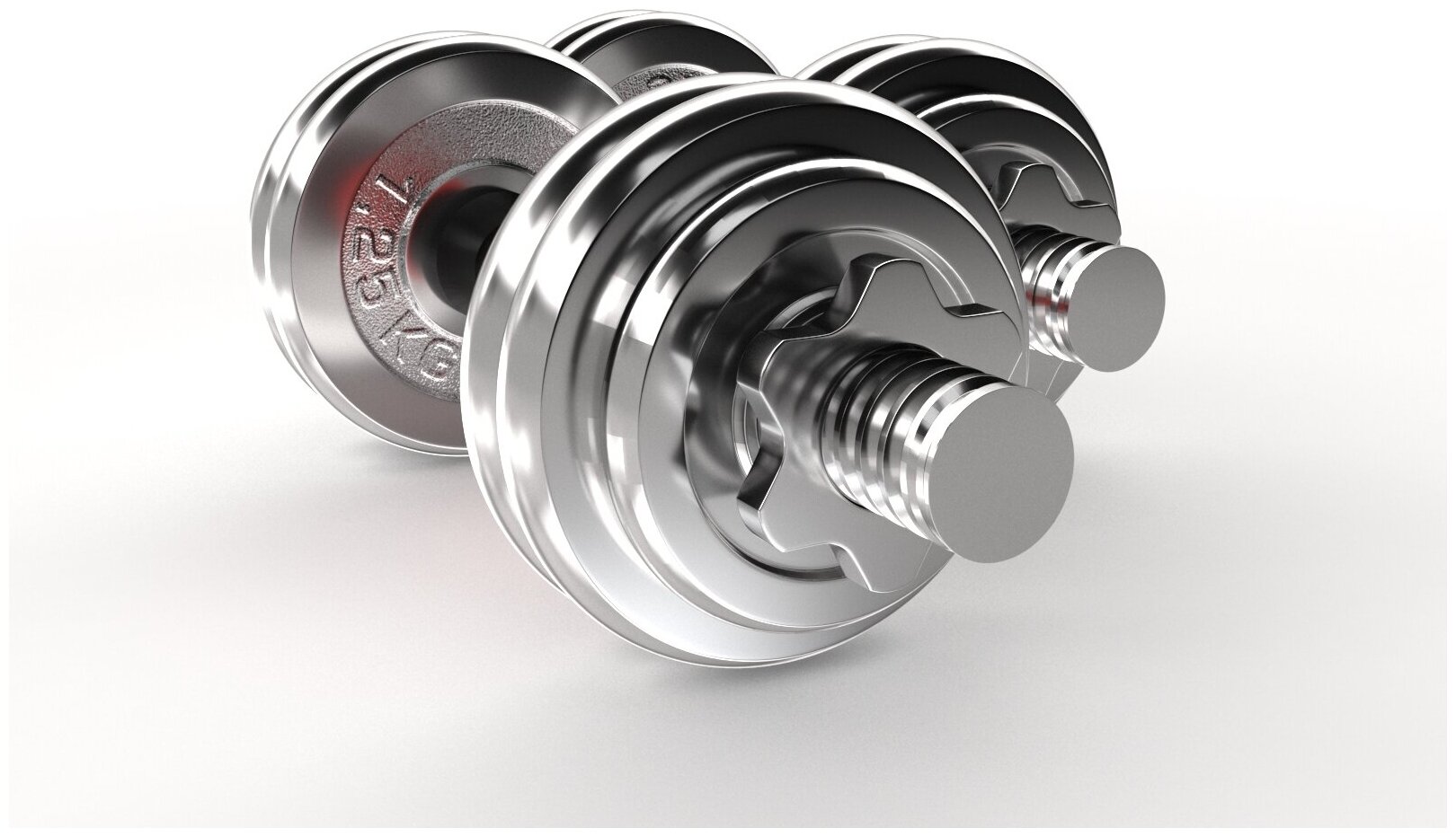 Type: dumbbell, design: collapsible, disc coating: chrome, handle coating: rubber
