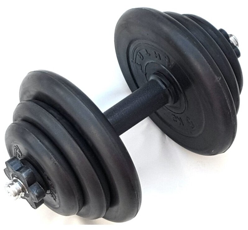 Type: dumbbell, design: collapsible, disc coating: rubber, handle coating: rubber