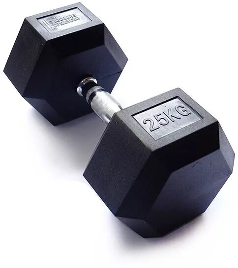 Type: dumbbell, dumbbell shape: hexagonal, disc coating: rubber, handle coating: chrome
