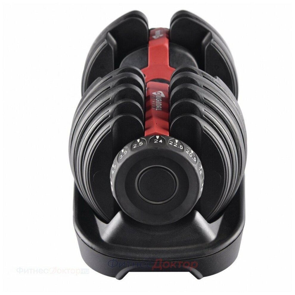 A set of folding dumbbells Original Fitness with step adjustment 2x24 2.5-24 kg with a rack