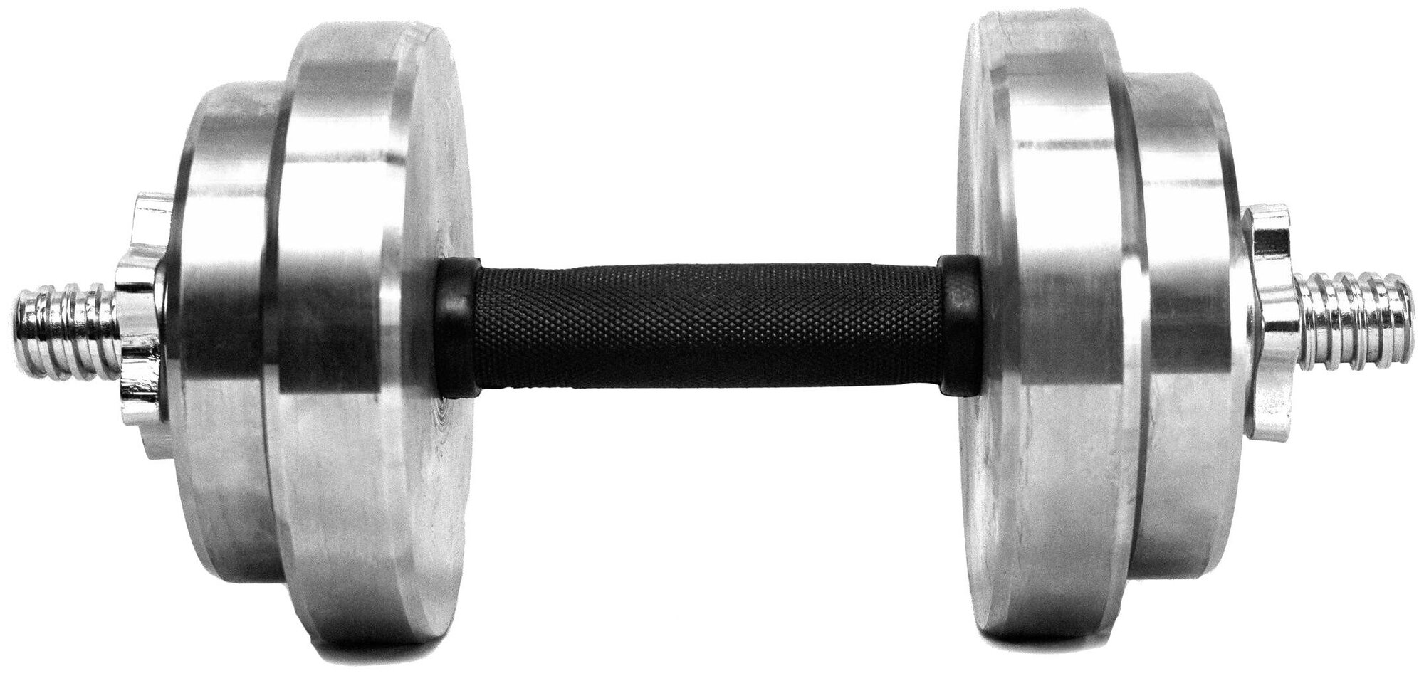 Dumbbell neck: 1 pc, screws for the neck: 2 pcs, discs: 2 x 5 kg, 2 x 2.5 kg.