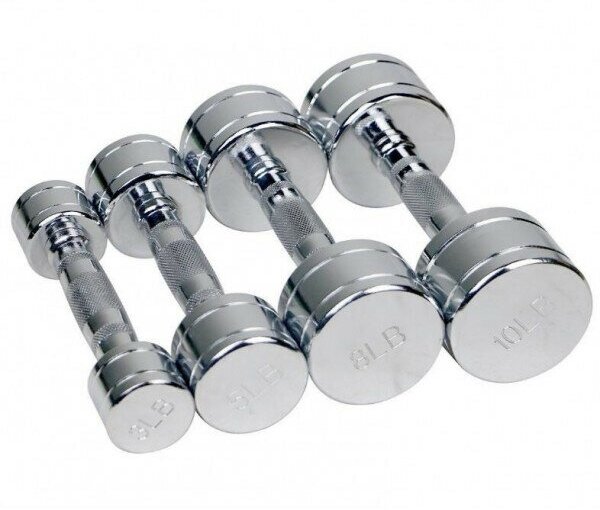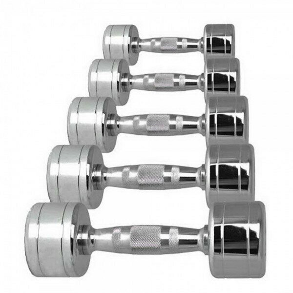 Type: dumbbell set, design: non-separable, dumbbell shape: round, disc coating: chrome, handle coating: chrome