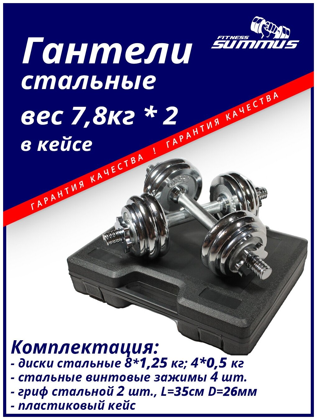 Dumbbells Summus collapsible in a case, 2 pcs. 7.5 kg each, chrome color