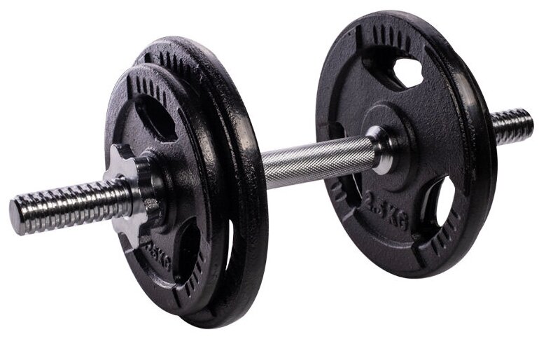 Type: dumbbell, design: collapsible, dumbbell shape: round, neck lock: nut, disc coating: paint, handle coating: chrome