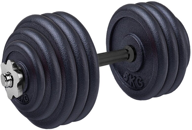 Type: dumbbell, design: collapsible, dumbbell shape: round, neck lock: nut, disc coating: paint, handle coating: rubber