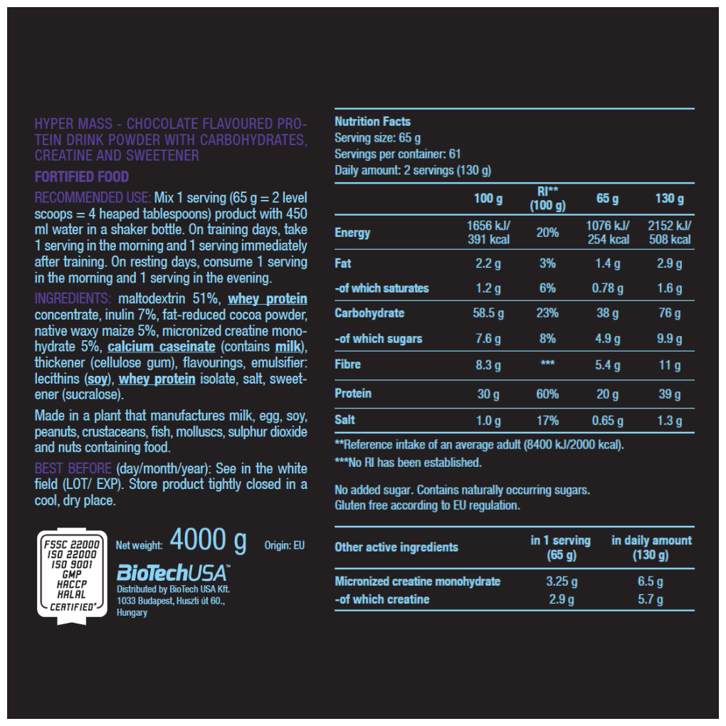 Type: high-carbohydrate, type of protein: multi-component, 100 g calories: 381 kcal, product form: powder, dietary features: non-GMO