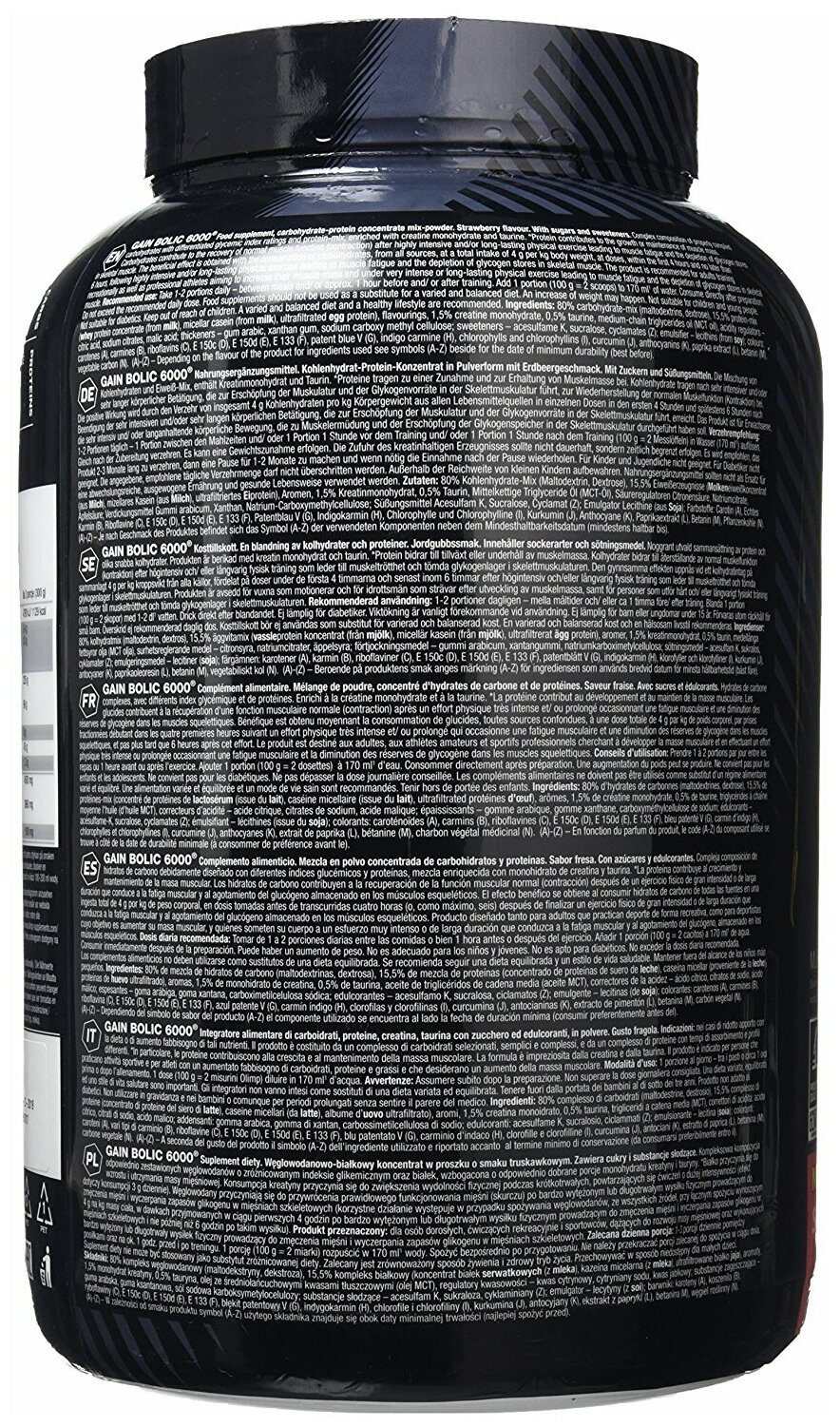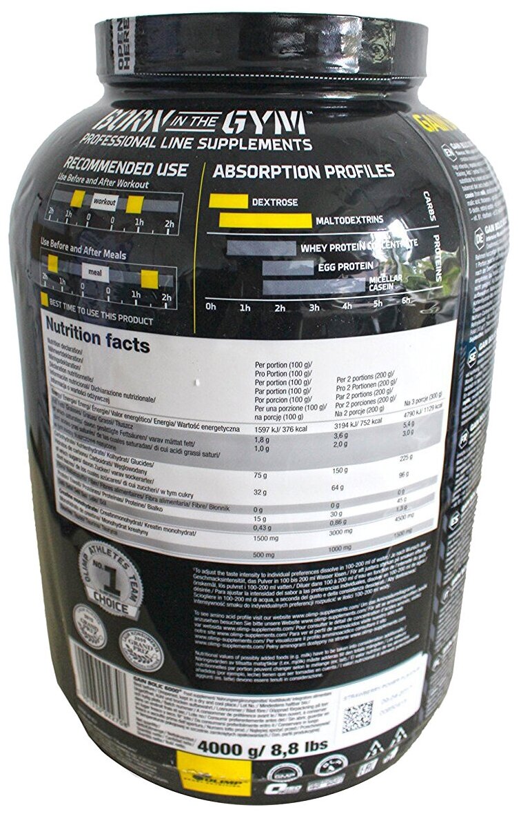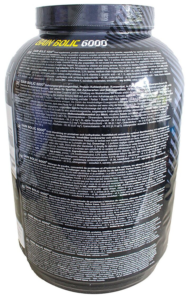 Description: Type: high-carbohydrate, type of protein: multicomponent, 100 g calories: 384 kcal, formulation: powder, dietary features: no aspartame, no saccharin, contains sucralose, antibiotics, chlorine