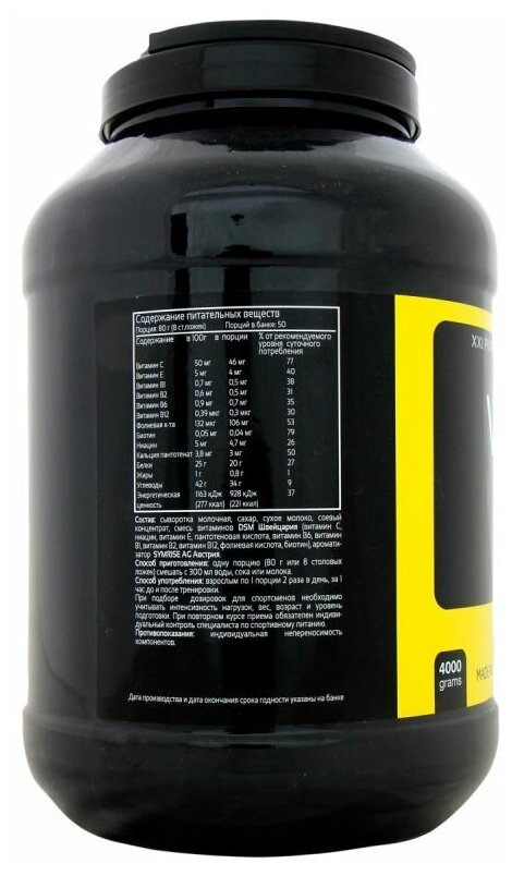 Type: high carbohydrate, protein type: multicomponent, 100 g calories: 304 kcal, dietary features: lactose free, maltodextrin free, saccharin free, contains aspartame