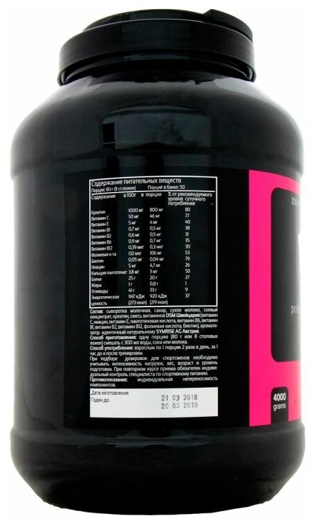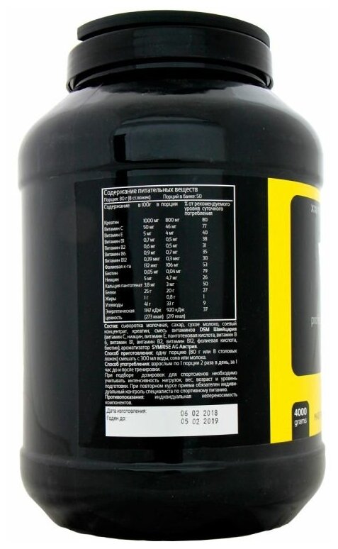 Calorie serving: 2050 kcal; Ingredients: Multi-Phase Carbohydrate Complex Glucose Polymers, Oat Bran [as Avena sativa], Isomaltulose, Multi-Phase Protein System Whey Protein Concentrate, Whey Protein Isolate