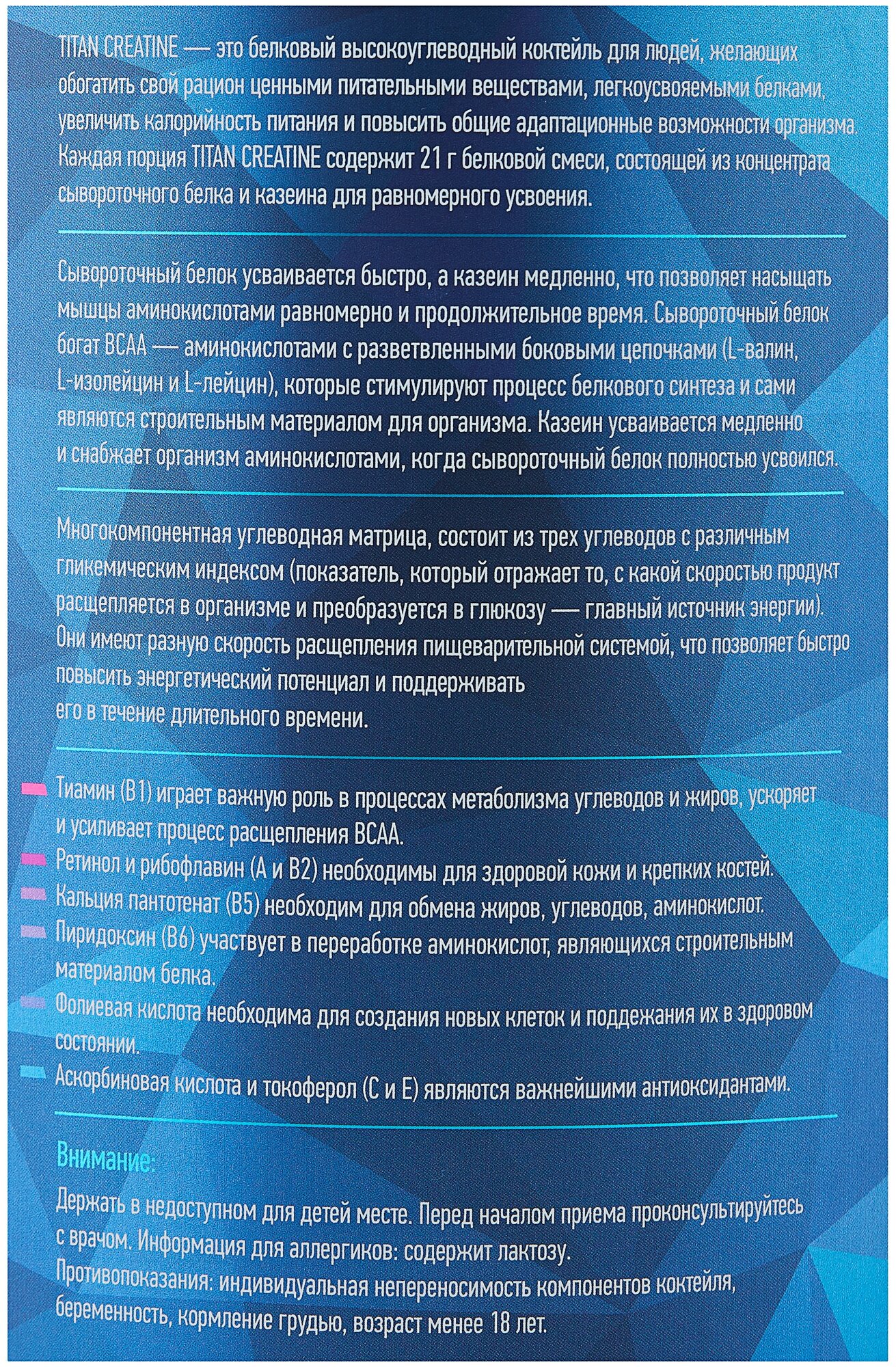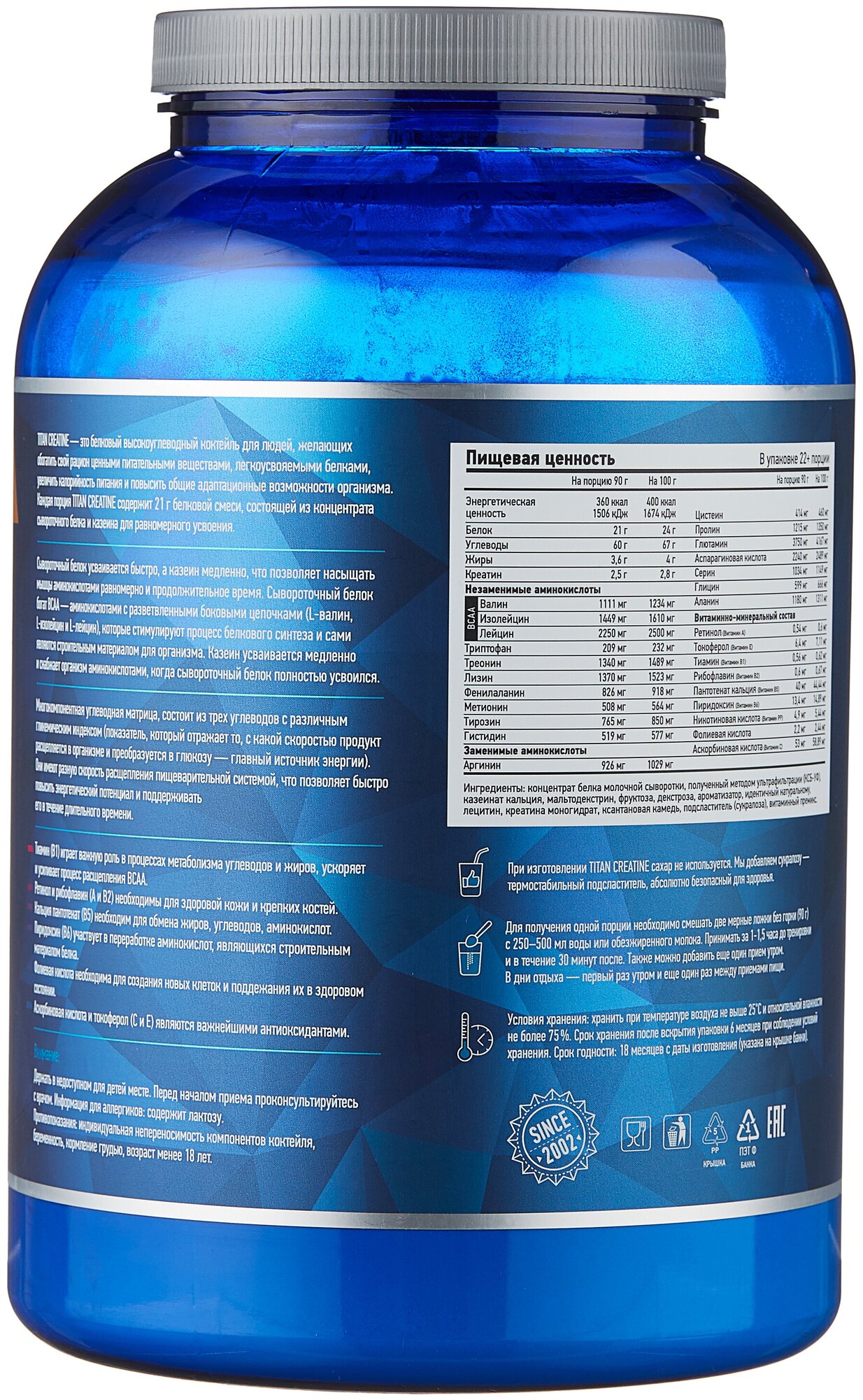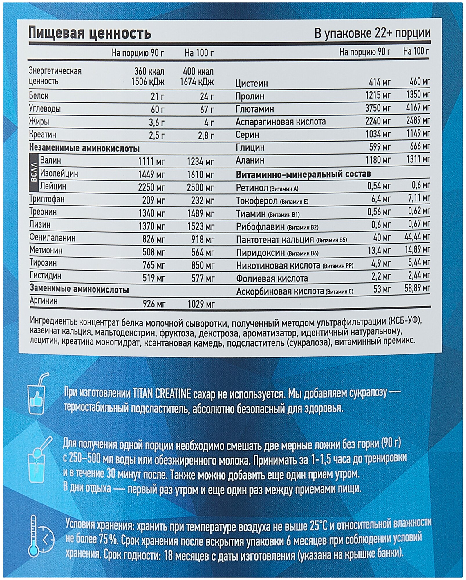 Description: Type: high-carbohydrate, type of protein: multicomponent, 100 g calories: 400 kcal, product form: powder, dietary features: non-GMO, no aspartame, no saccharin, contains maltodextrin, contains sucralose