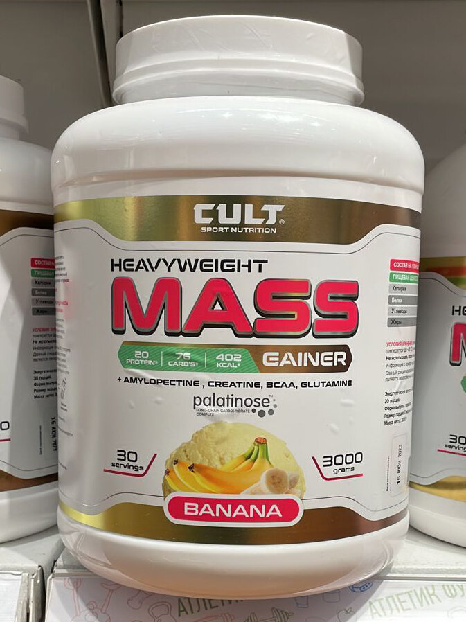 Type: high carbohydrate, type of protein: whey concentrate, calories per 100 g: 402 kcal