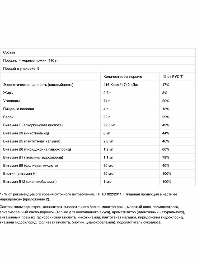 Calorie serving: 2050 kcal; Ingredients: Multi-Phase Carbohydrate Complex Glucose Polymers, Oat Bran [as Avena sativa], Isomaltulose, Multi-Phase Protein System Whey Protein Concentrate, Whey Protein Isolate