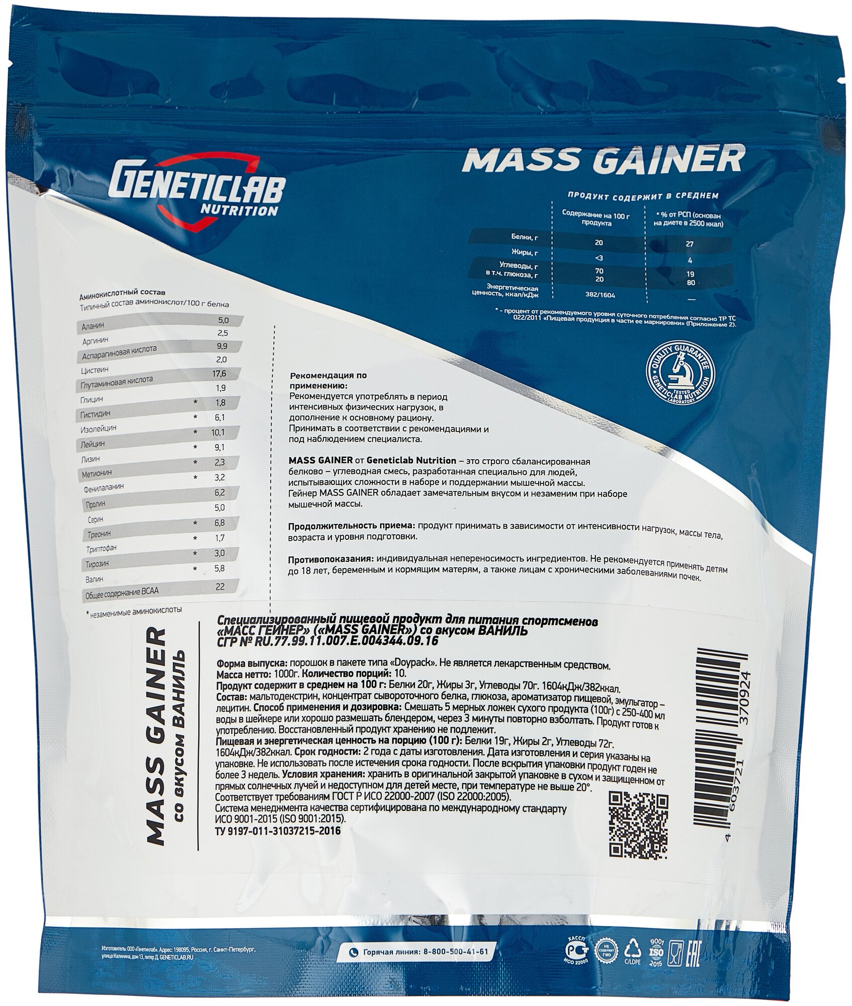 Geneticlab Nutrition Mass Gainer 2000 g