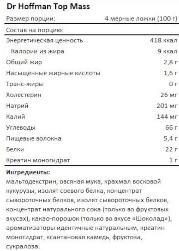 Gainer Dr. Hoffman Top Mass 4700 g