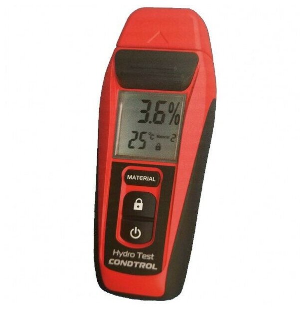 Battery type: "Krona" type battery, type: moisture meter, measured materials: concrete, aerated concrete, drywall, wood, brick, mortar screed, plaster, functions: auto-off, current reading hold, ma
