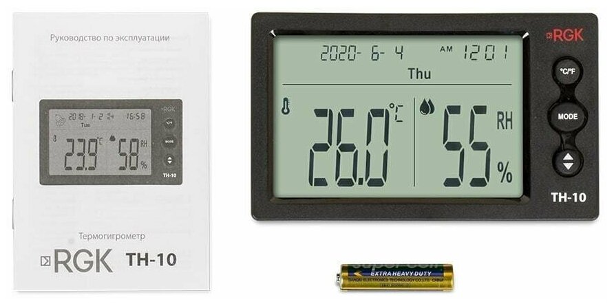 Measurement accuracy: temperature - from ±1°С, humidity - ±5%; changeover of measurement units: °C/°F; time and date display; alarm function; has a certificate of approval of the type of measuring instruments