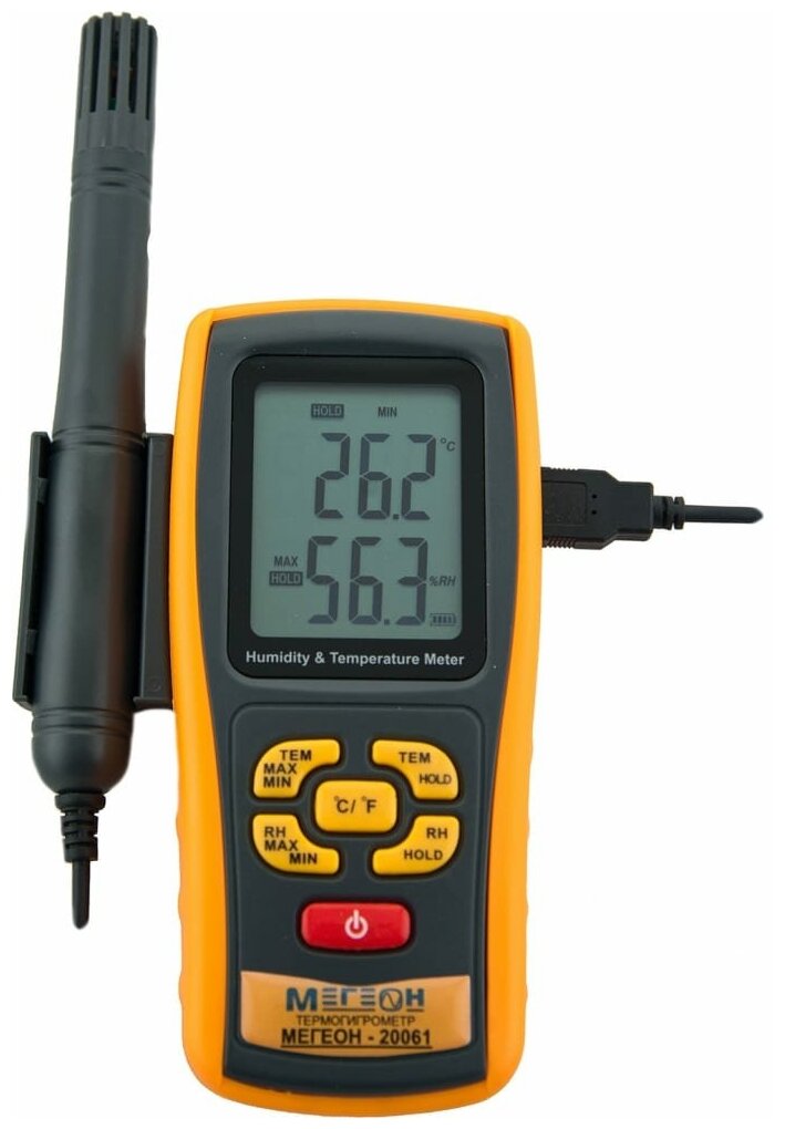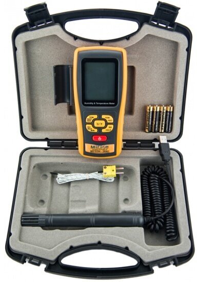 Battery type: AAA, type: thermohygrometer, external sensor, measured materials: air, functions: auto-off, air humidity measurement, temperature measurement, dew point detection, screen backlight, maxi