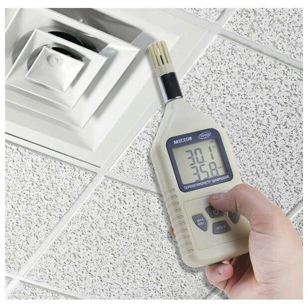 Battery type: Krona type battery, type: thermohygrometer, measured materials: air, functions: auto-off, recording of maximum and minimum values, air humidity measurement, temperature measurement