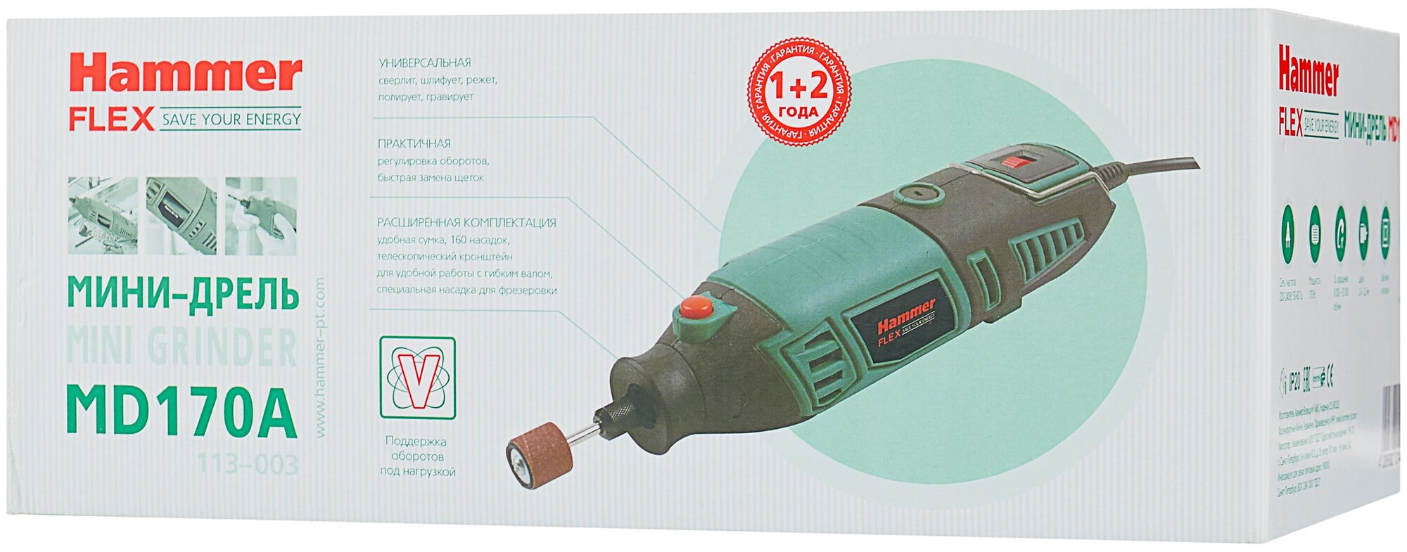 Type of power supply: mains, power consumption: 170 W, max. speed: 35000 rpm, functions: speed control, speed stabilization system, design features: power button lock, additional