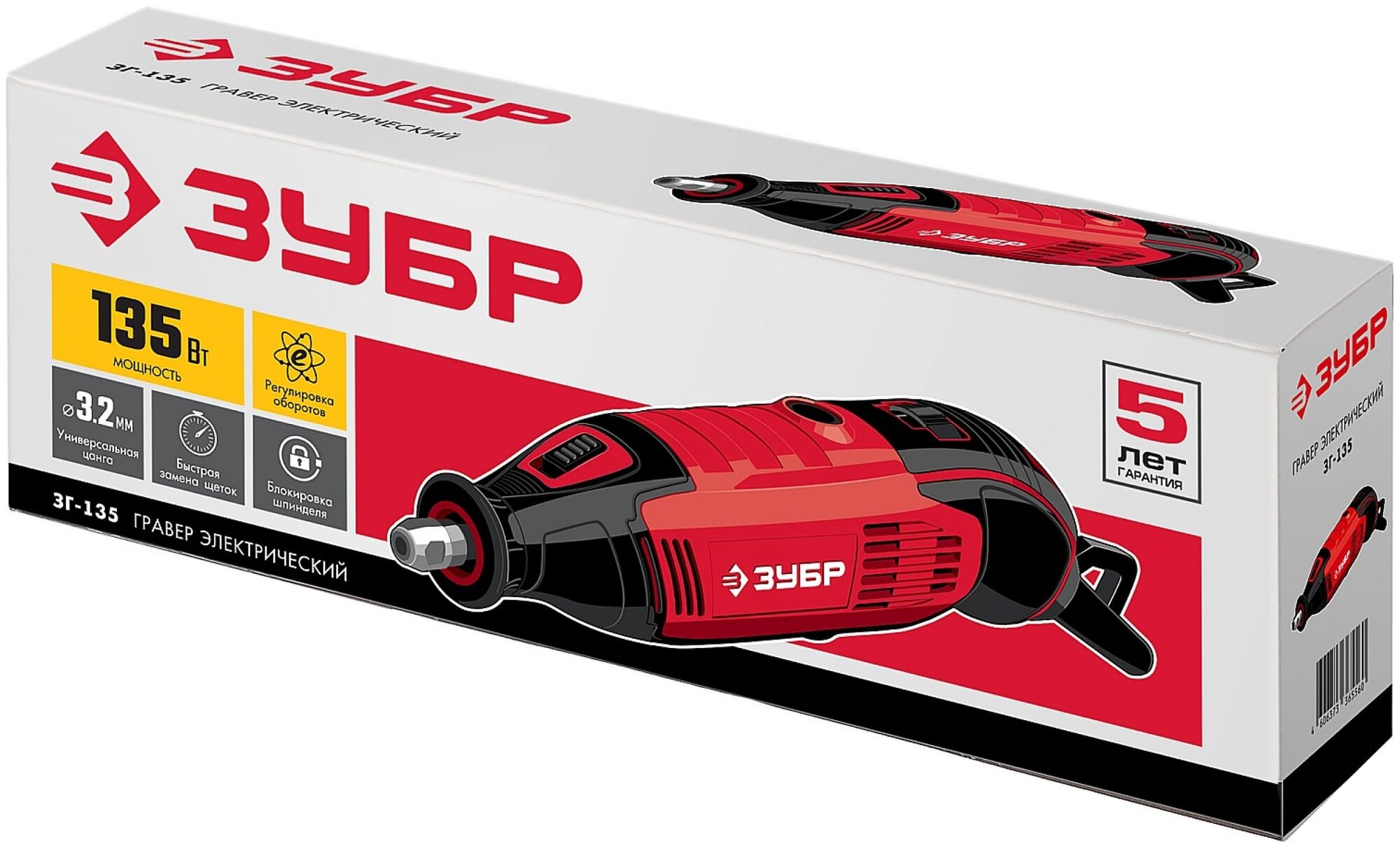 Electric engraver ZUBR ZG-135, collet 3.2 mm, wrench, instruction manual