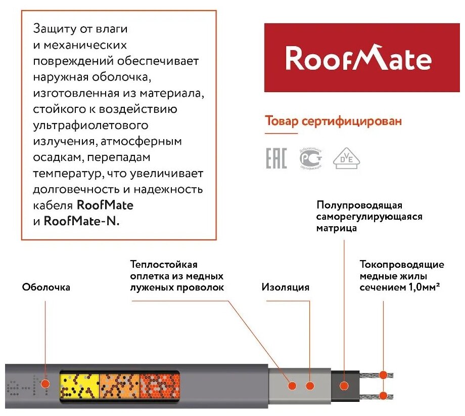 Type of cable: self-regulating, scope: plumbing, drainage, sewerage, roofing, pipeline, installation: outdoor, type of accessory: heating cable