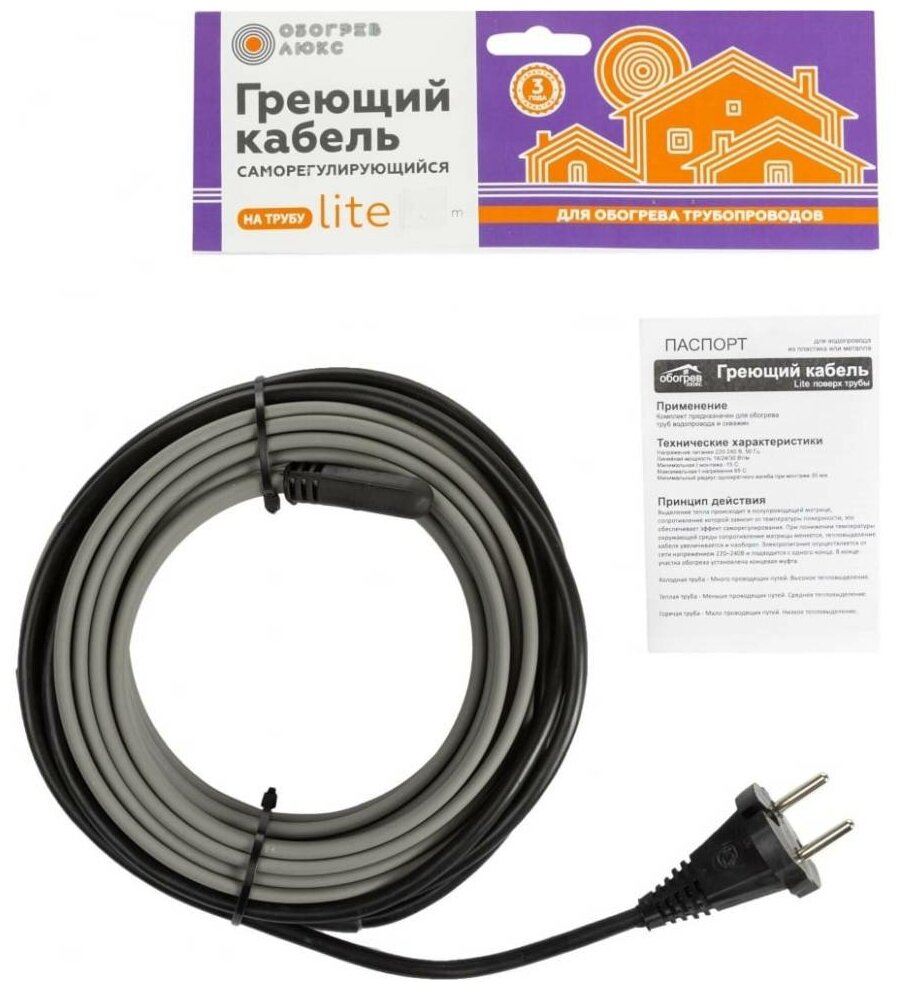 Detailed equipment: - heating section made of self-regulating heating cable SRL 16-2, power 16 W/m with power cable and plug - product passport with a mark of factory testing - warranty card