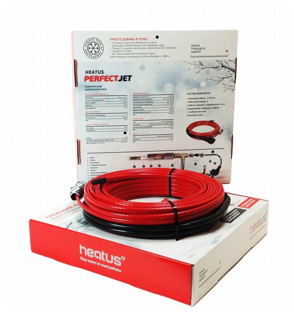 Description: Type of cable: self-regulating, field of application: plumbing, sewerage, drinking water supply, ready-made, installation: internal, suitable for installation in a pipe, type of accessory: plug, heating cable, cable