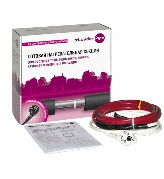 Description: Type of cable: self-regulating, field of application: plumbing, drainage, sewerage, roofing, open area, pipeline, ready-made kit, installation: outdoor, type of accessory: plug, heating cable