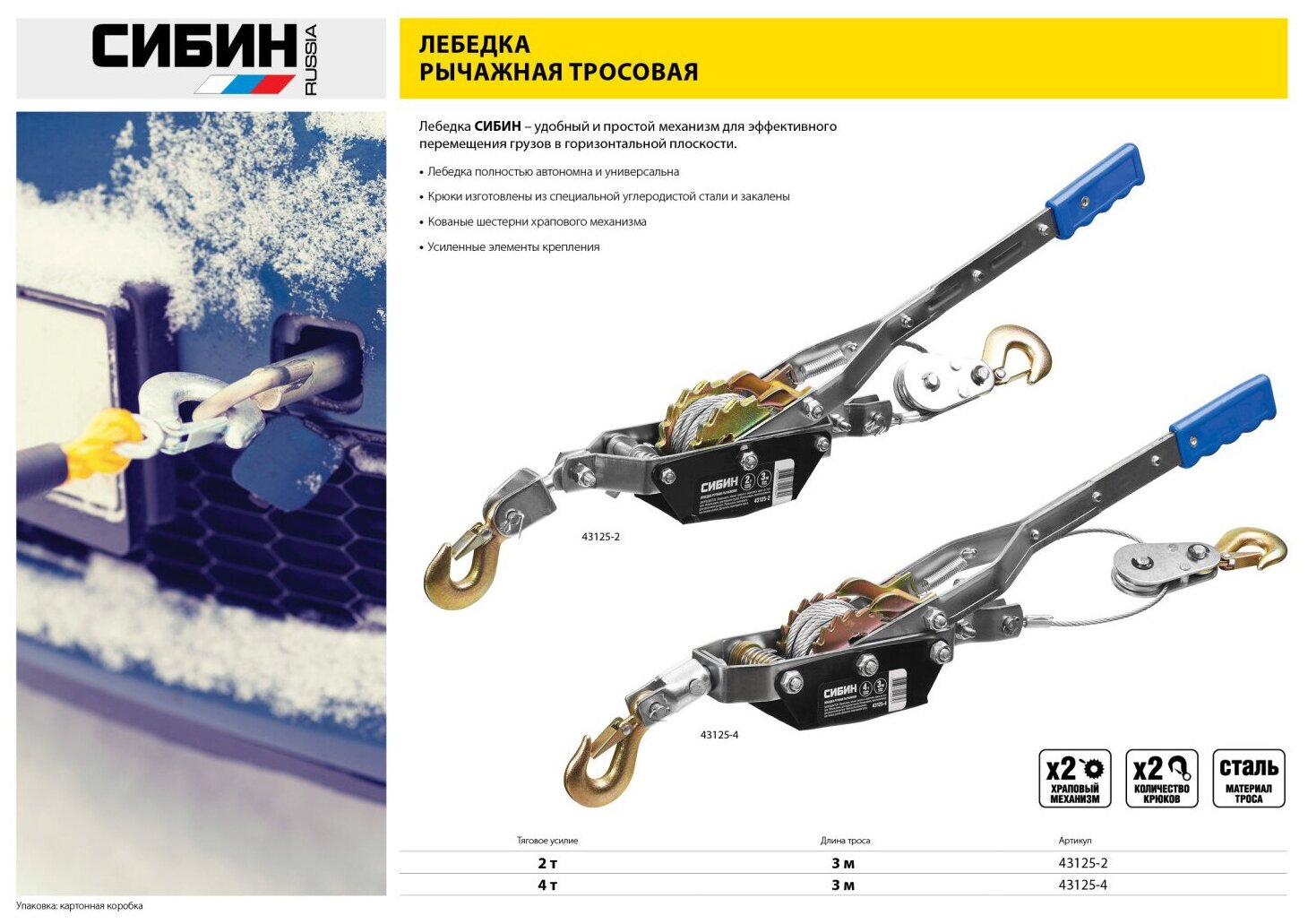 Pulling force 2 t; cable length 3 m; cable diameter 5 mm, only for horizontal movement of the load