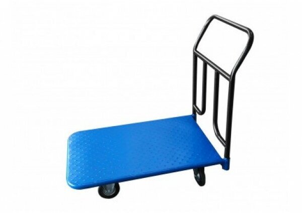 Wheel diameter: 125 mm; the handle is bolted to the platform and removed for compact storage, handle height: 750 mm; flooring: metal sheet 1.2 mm thick, embossed anti-slip surface, polymer coating