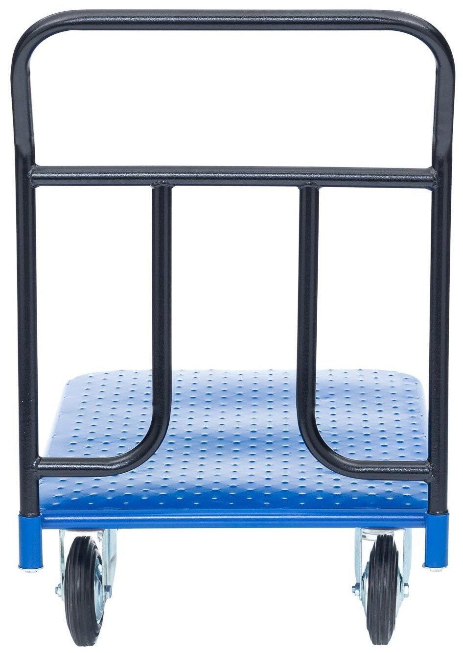 Wheel diameter: 125 mm; the handle is bolted to the platform and removed for compact storage, handle height: 750 mm; flooring: metal sheet 1.2 mm thick, embossed anti-slip surface, polymer coating
