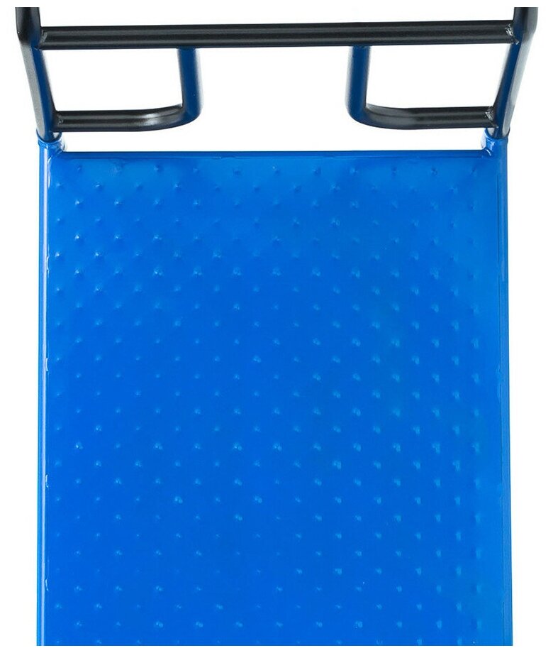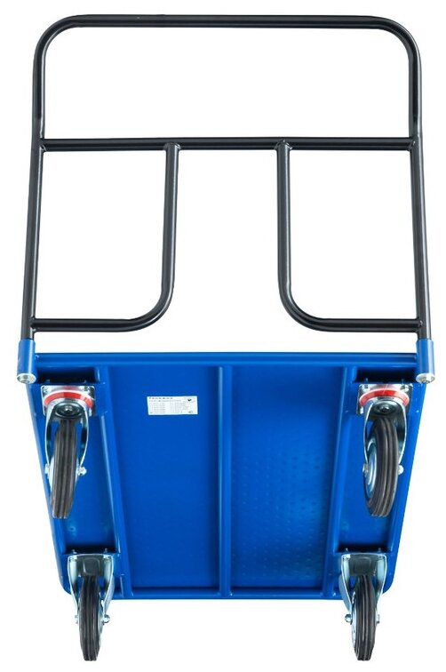 Wheel diameter: 125 mm; the handle is bolted to the platform and removed for compact storage, handle height: 750 mm; flooring: metal sheet 1.2 mm thick, embossed anti-slip surface, polymer coating