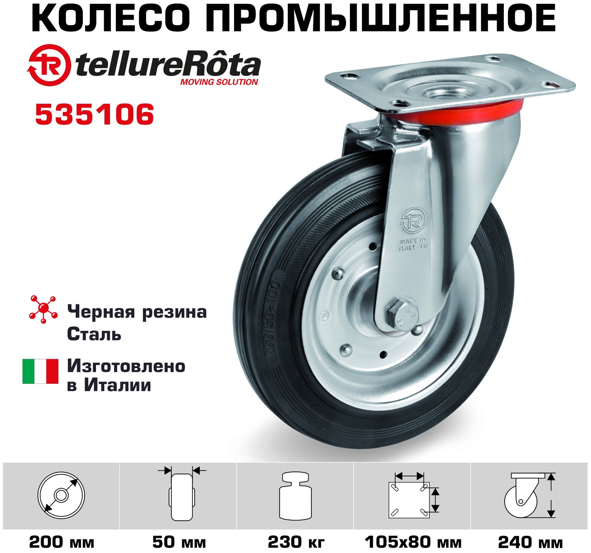 ⌀ wheels 200 mm; wheel width 50 mm; 230 daN