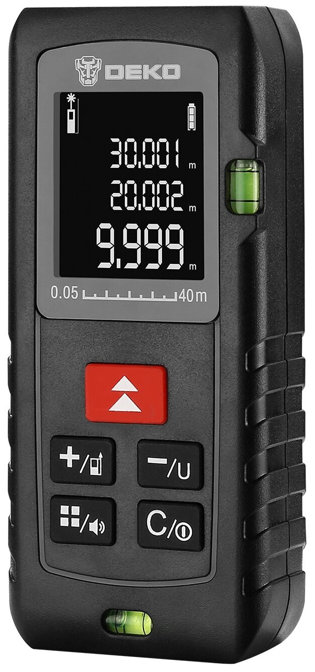 Type: laser, measurement range without reflector: 70 m, measurement accuracy: 2 mm, sound indication, auto-off, shockproof housing, Pythagorean function, volume calculation function, continuous measurement function, function