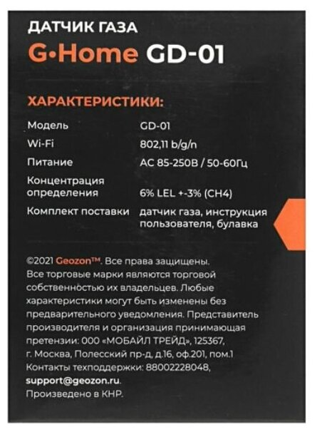 Gas detector Geozon GD-01 Wi-Fi GSH-SDG01