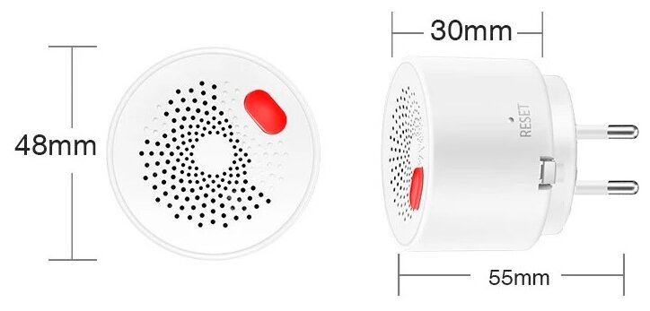 Type of gas being detected: methane, type of alarm: optical/acoustic, installation method: overhead. to the surface, ecosystem: Tuya Smart, device connection type: wireless, communication protocol: Wi-Fi, color: white