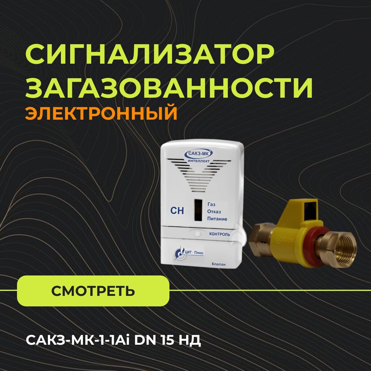 Set: gas alarm SZ-1-1Ai with power adapter, valve KZEUG-B DN15, connecting cables