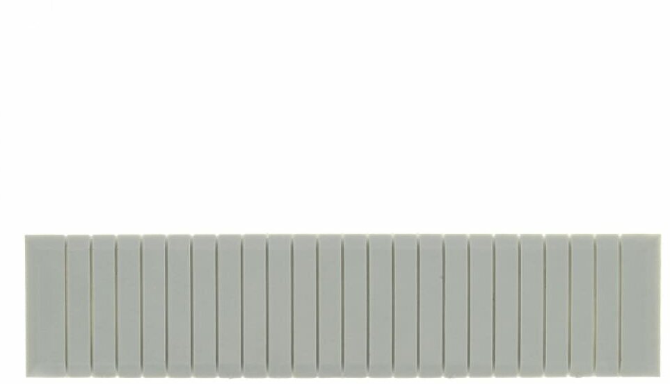 Type: plug for the front panels of plastrons of metering and distribution boards, height: 51 mm, width: 226 mm, depth: 9 mm, material: plastic, color: white, RAL color number: 9010, Number of module distances per D