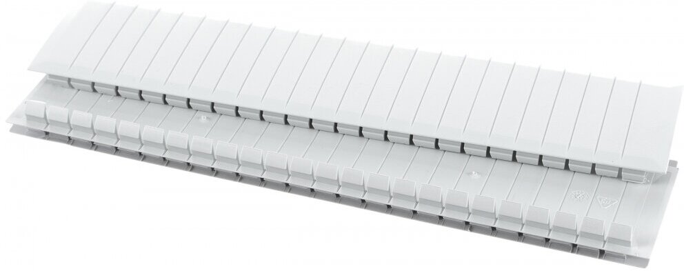 Type: plug for the front panels of plastrons of metering and distribution boards, height: 55 mm, width: 216 mm, material: plastic, color: grey, RAL color number: 7035