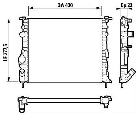 Type: radiator, OE code: NISSAN 21400-00QAV, RENAULT 7700314382, RENAULT 7701499975, car model: Nissan Kubistar, Renault Clio, Renault Kangoo, set quantity: 1pc.